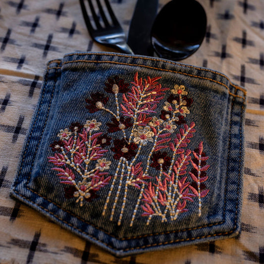 DALLAS: Upcycled Denim Cutlery Pocket with Wildflowers- Sold as a Bundle of 4