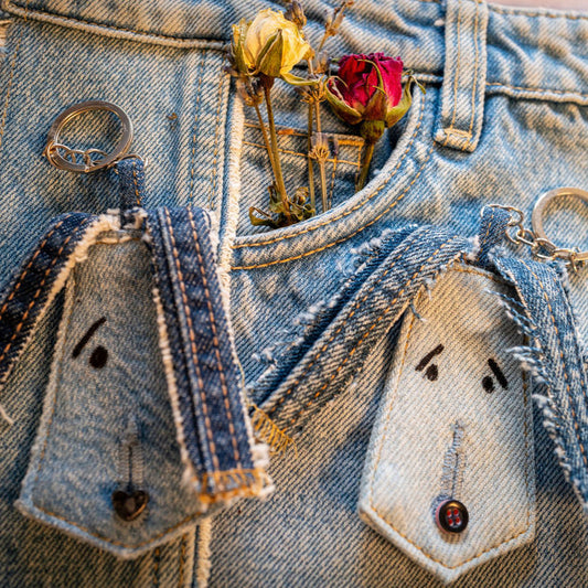 MEMPHIS: Upcycled Denim Cutlery Pocket with Heart- Sold as a Bundle of 4